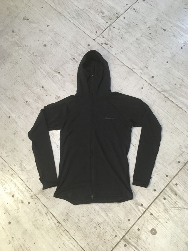 Polartec?PowerGrid?を使用した「パワーグリッド? フルジップフーディ」。 パワーグリッドは適度な保温性と動きやすさを両立するウェアの為、ランニングなどのアクティブな動きでも伸縮性や通気性がにすぐれ、ストレスなく着用し続けることができます。 ストレッチ性があるため、タイトなカッティングでも着用によるつっぱり感のストレスがなく動きに追従します。 また、このフーディは、ダブルジッパー使用になっているので、体温調節が簡単にできるのも魅力の1つ。 襟が高く、寒い時にはジッパーをしっかり閉めて、厚くなったら脱着せず、下のジッパーを開ければ快適な温度になるので、面倒なウェアリングの調整が楽にできます。 冬のランニングの時にはアウターとして、寒い時や、スローペースの登山やハイキングの時などにはシェルやダウンを上から羽織り、ベースレイヤーとして使用できる優れものです。 167cmの小山田は現在Sを着用してます。 サイズ: XS:胸囲45㎝ 着丈69㎝ 袖丈73㎝ S:胸囲47.5㎝ 着丈72.5㎝ 袖丈75㎝ M:胸囲50㎝ 着丈75.5㎝ 袖丈77㎝ L:胸囲52.5㎝ 着丈78.5㎝ 袖丈79㎝ カラー:Black 価格:15900円(税抜き)
