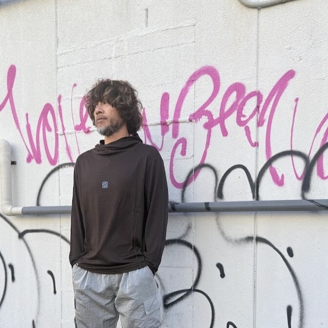 バンブーシュート / メリノウール ロングスリーブフーディー 【金額】¥24,200-(税込) 【素材】WOOL53%,POLYESTER47%(COOL MAX30%) 【カラー】ブラック 【サイズ】ユニセックスモデル Mサイズ:肩幅55cm / 胸囲57cm / 着丈67cm / 袖丈61cm Lサイズ:肩幅58cm / 胸囲60cm / 着丈70cm / 袖丈62cm ※着用写真(身長168cm):Lサイズ着用(カラー:オリーブ) ※商品紹介写真には、別カラーも含まれます。仕様は同じなので参考画像としてご覧ください。 ---------------------------- メリノウールとクールマックス(ポリエステル)をMIXした素材で出来たフーディです。 軽量で伸縮性があり、ウール特有の温かさと消臭性、ポリエステルならではの吸水速乾性と耐久性の高さが合わさり、より幅広いシーンで着用可能です。 首元はスナップボタンがあり、体温や風によって調節可能。 まるでワッフルのような質感は、ナチュラルな雰囲気と合わさり、アウトドアシーンだけでなく、デイリーユースでも活躍します。 腕はリブになっているので、まくり上げた時に、ずり落ちてこないので便利です。 ---------------------------- 【特徴】 ・抜群のレイヤードバランスを保ちながら単体で着用できるフーディ ・2連のスナップボタンは対応調節機能だけでなくレイヤード時のアクセントとして機能 ・ブランド独自の「Yジョイントスリーブ」で腕回りの運動性を確保しながら、より立体感のあるシルエットを構築 ・クールマックスとの混紡により吸湿性に優れる ・メリノウール特有の肌触りと素材感 ・天然の消臭効果と優れた調湿機能 ・都市生活からアウトドアまで1年を通して活躍 ・ハンドウォッシャブル ・一枚で着用できるリラックスフィット