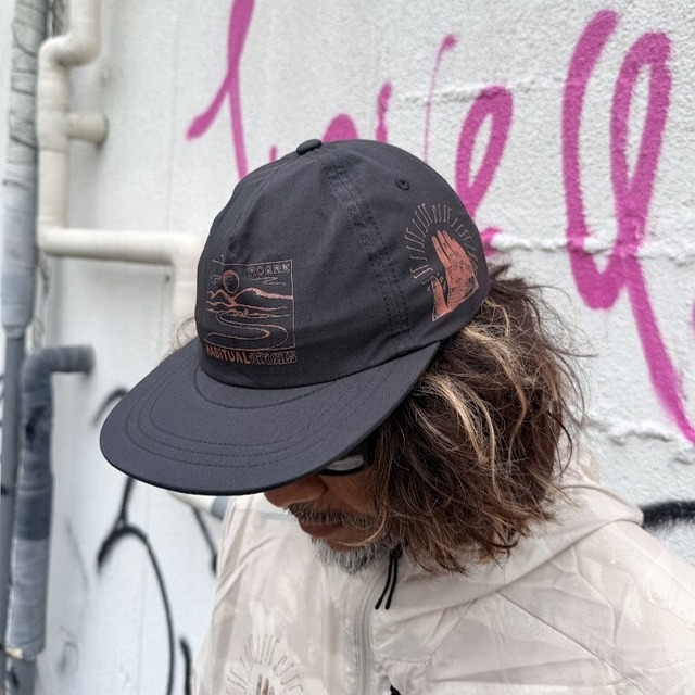 ロアーク / ランアモック / マティス 5パネル 【金額】¥6,600-(税込) 【素材】コットン64% ナイロン33% ポリウレタン3% 【カラー】ブラック 【サイズ】ONE SIZE(頭囲:52-62cm) 【深さ】12cm 【ツバの長さ】6.5cm ---------------------------- コットンブレンドのキャップです。 ツバはしっかり固め、フラットなタイプです。 アウトドアシーンはもちろん、デイリーユースでも活躍します。