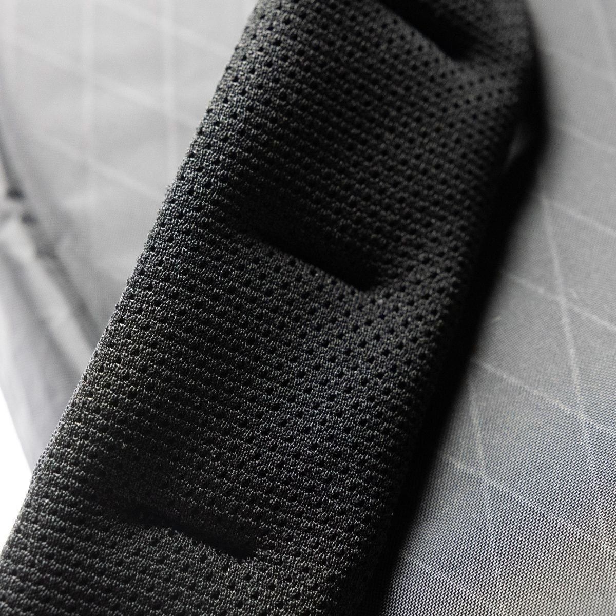 ショルダー部分の内側には滑り止め加工がされており、チェストハーネスなしでもズレる心配はありません。
