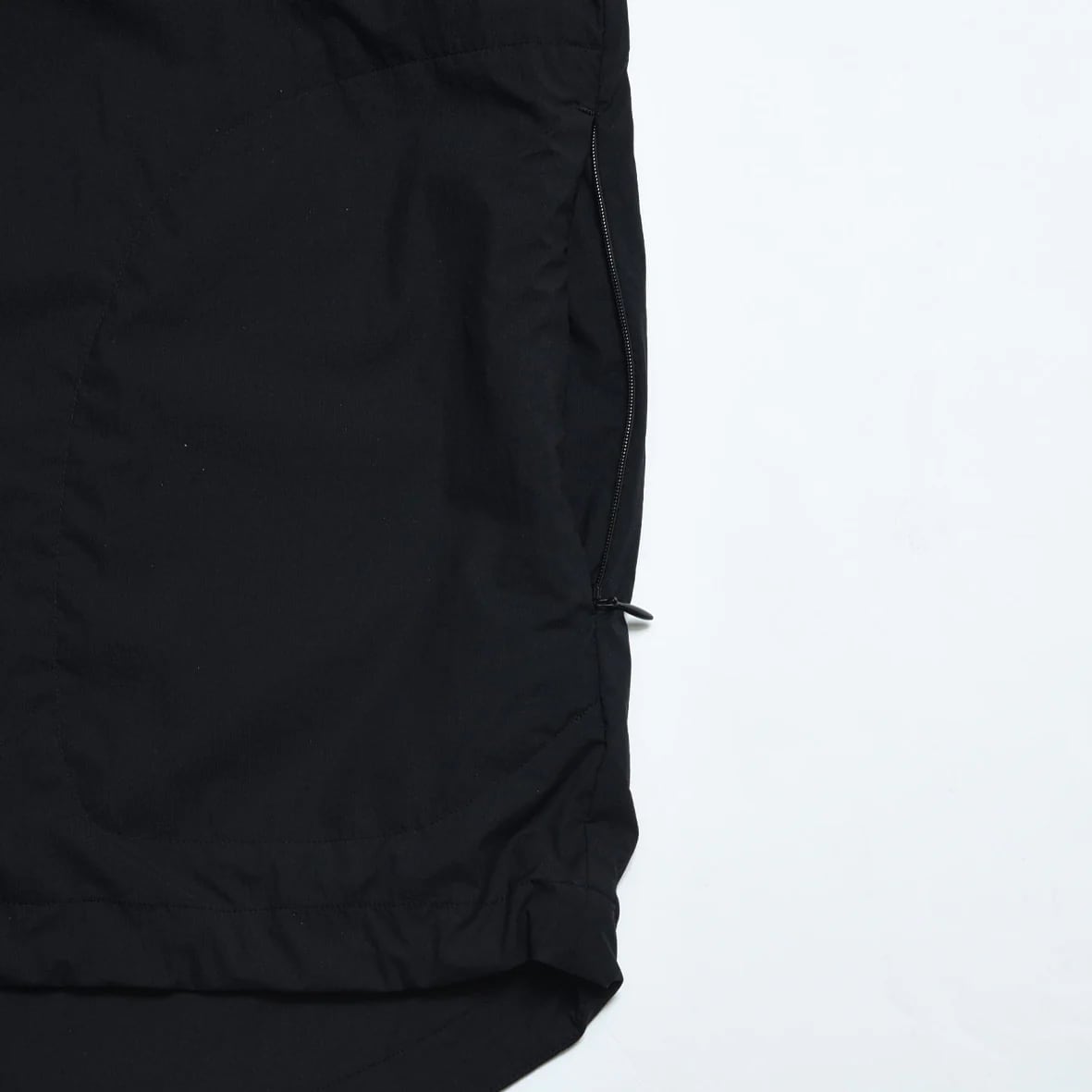 オフセットジップが特徴のウインドジャケットは、耐久性に優れるCORDURA社の4WAYストレッチナイロンを使用。