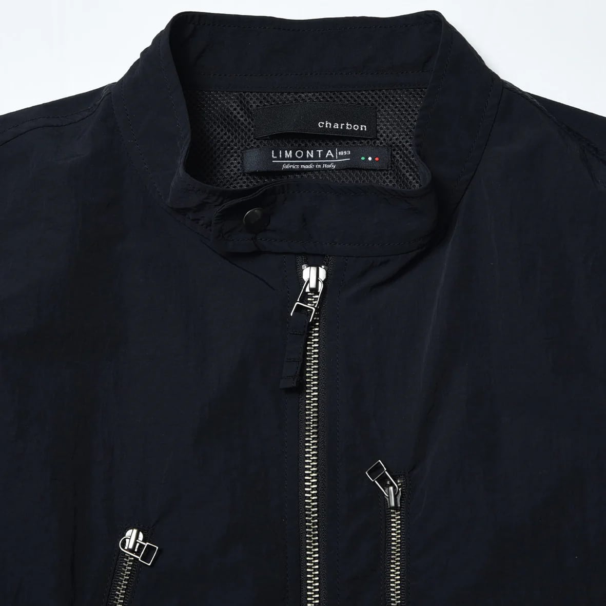 名門イタリア・リモンタ社のワッシャーナイロンを使用したスタンドカラーベスト。