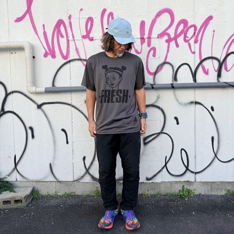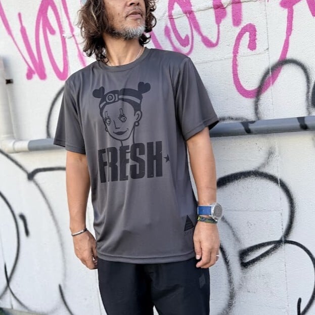 今回、そんな合言葉と共に、100mileの眠さと疲労に負けずに瞼をこじ開けるFRESH Girlを大きくプリントした、インパクト大のTシャツです。