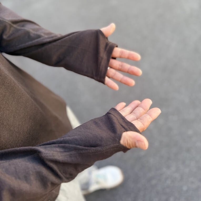 また、サムホール付きで、温かいだけでなく、腕まわりのもたつきが無いため、動きやすく、すっきりとした美しいシルエットを実現しています。