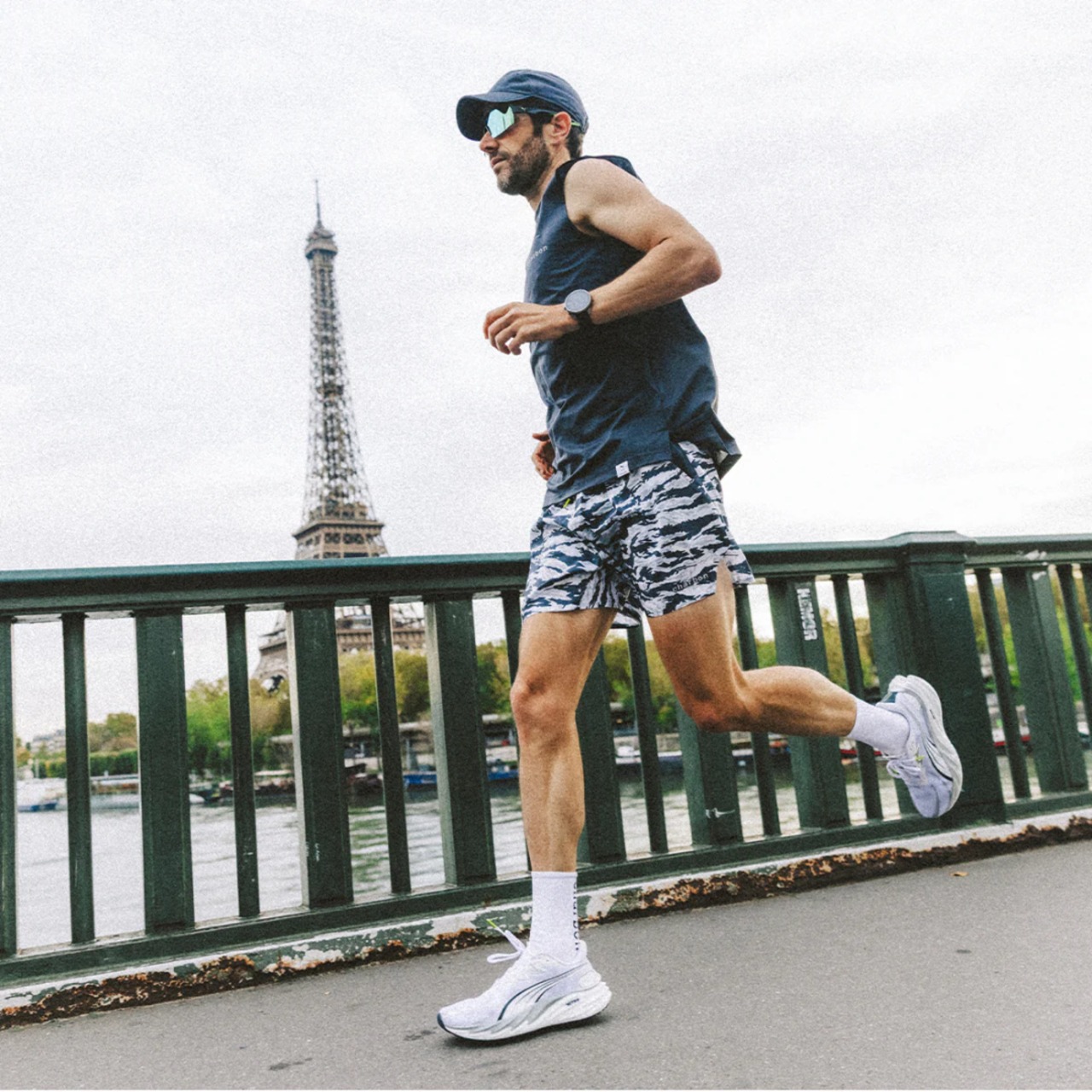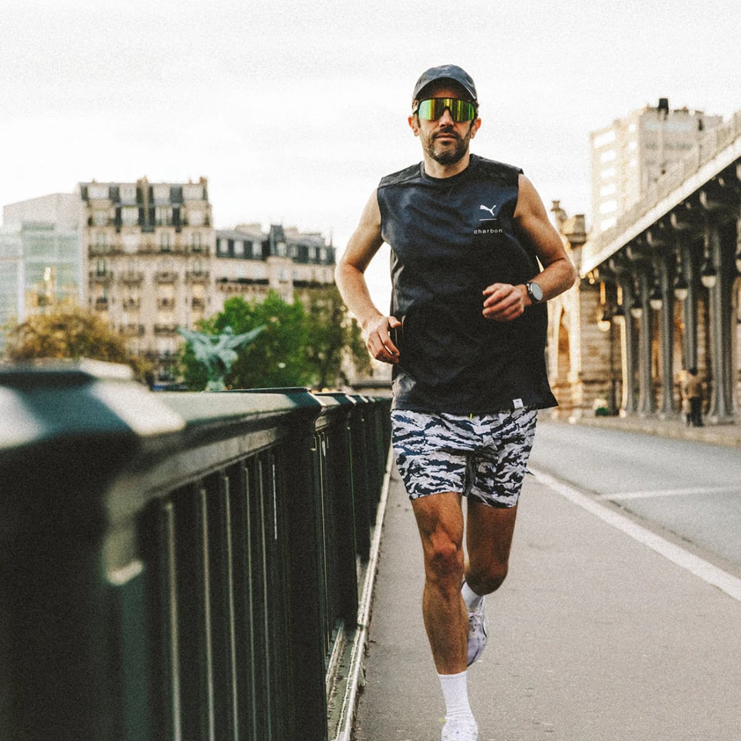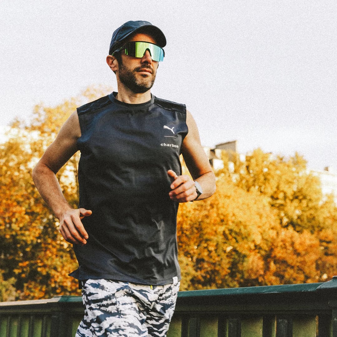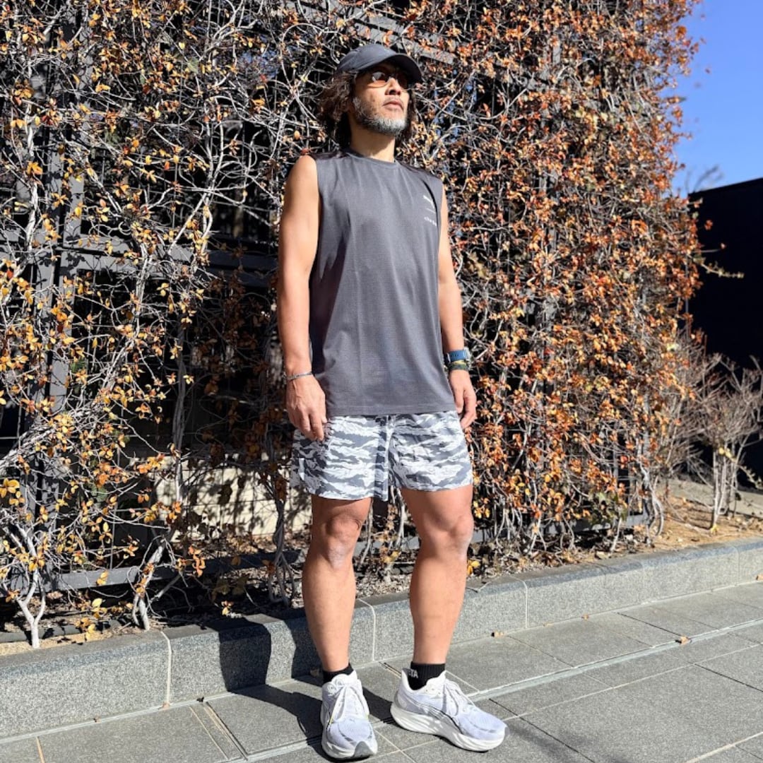 PUMA独自の吸水速乾性の高い生地「DRY cell」を採用し、charbonパターンで作られたスリーブレスです。