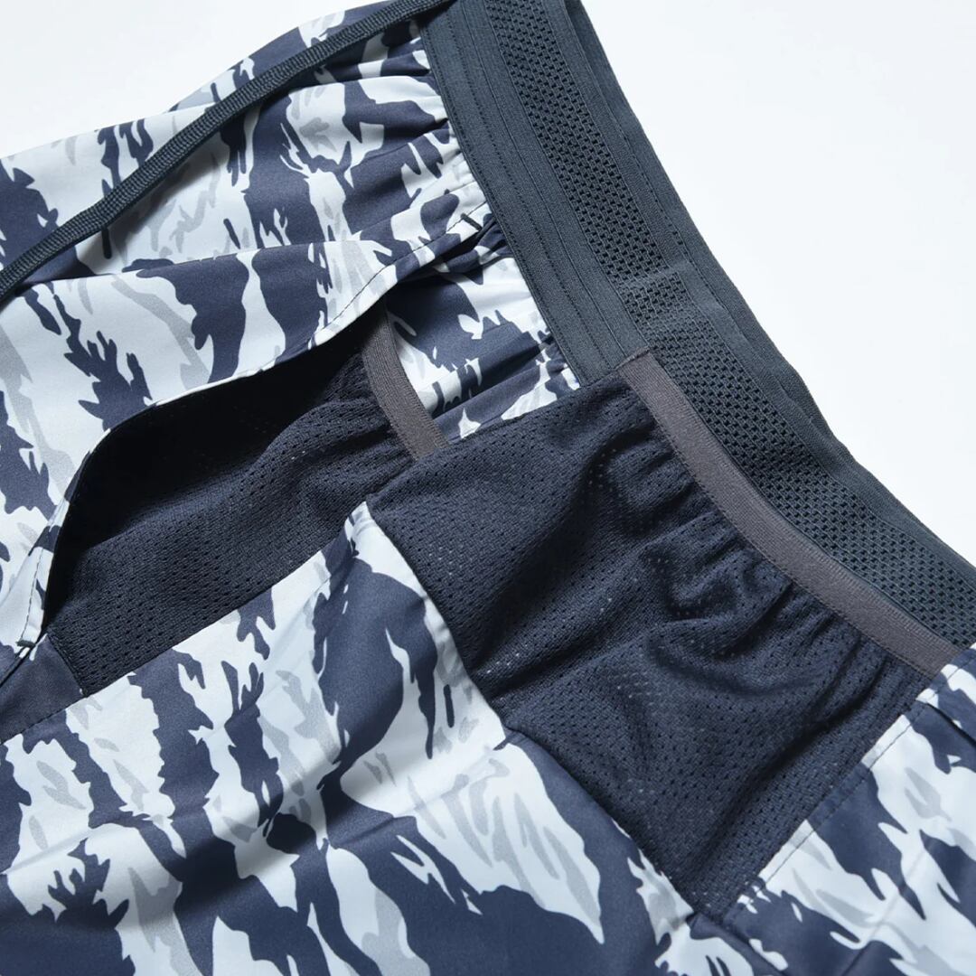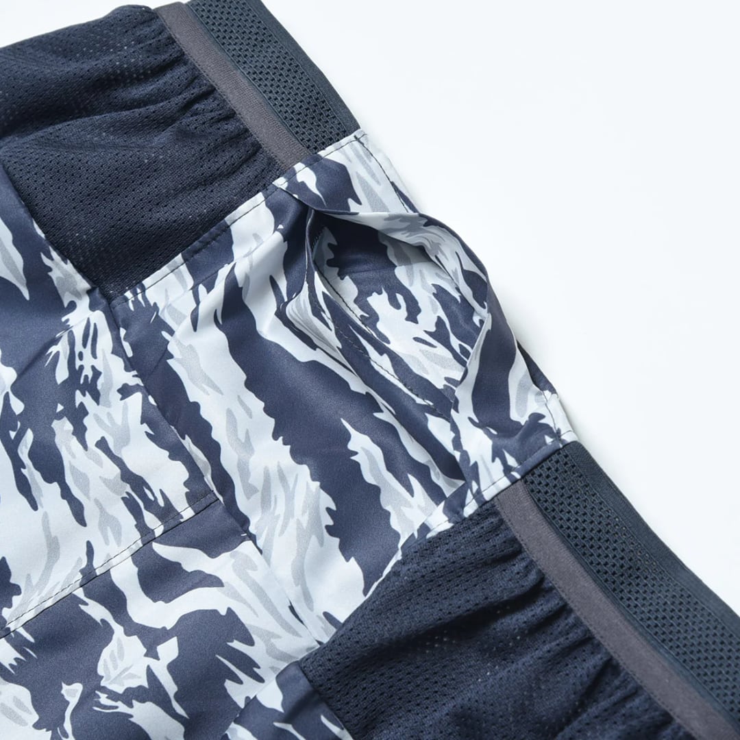 動きやすく、収納力も高いランニングショーツになっており、グレーを基調としたオリジナルタイガーカモ柄は、ライフスタイルにも溶け込み、シーンを問わず着用が可能です。