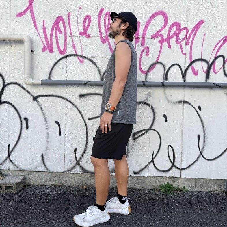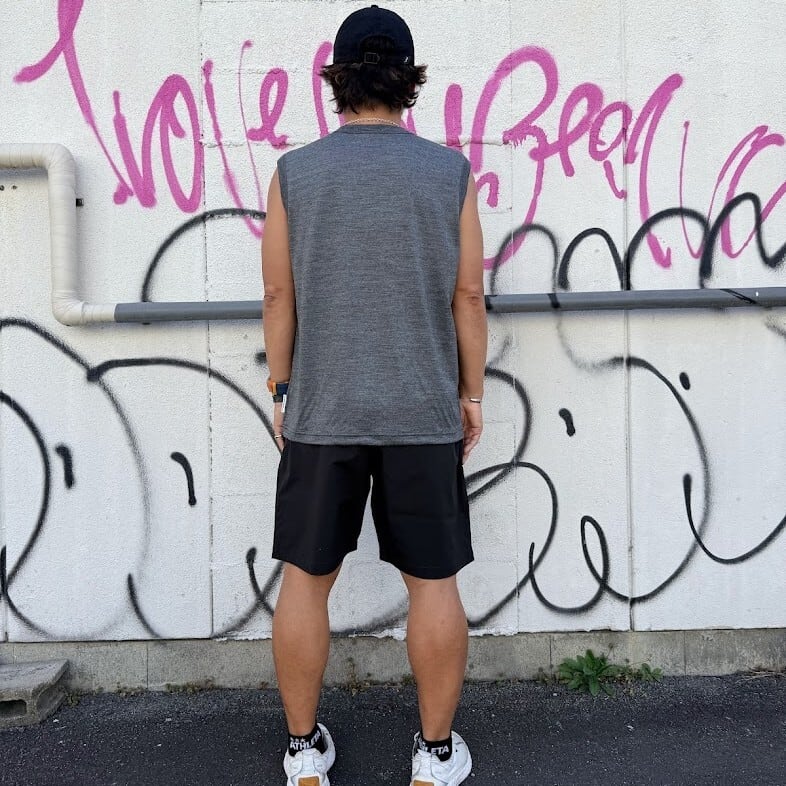 速乾性・通気性に優れた素材で、風通しもよく、膝上丈なので軽いジョギングなどにも便利。