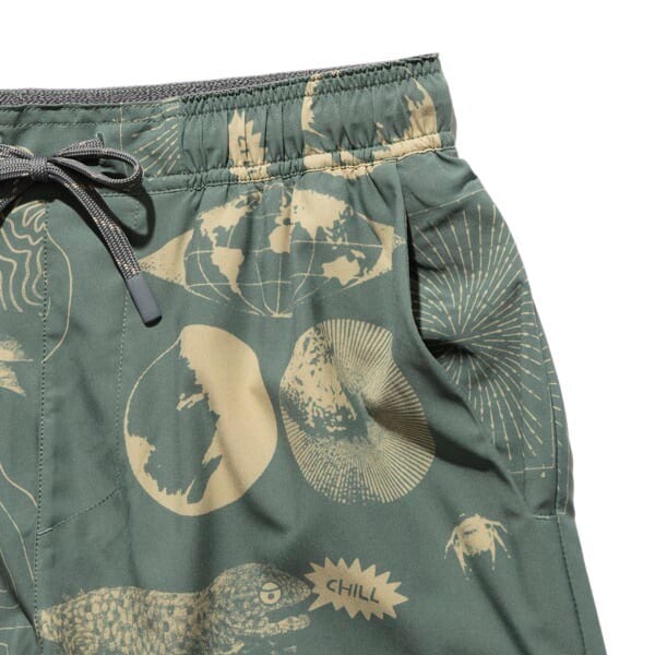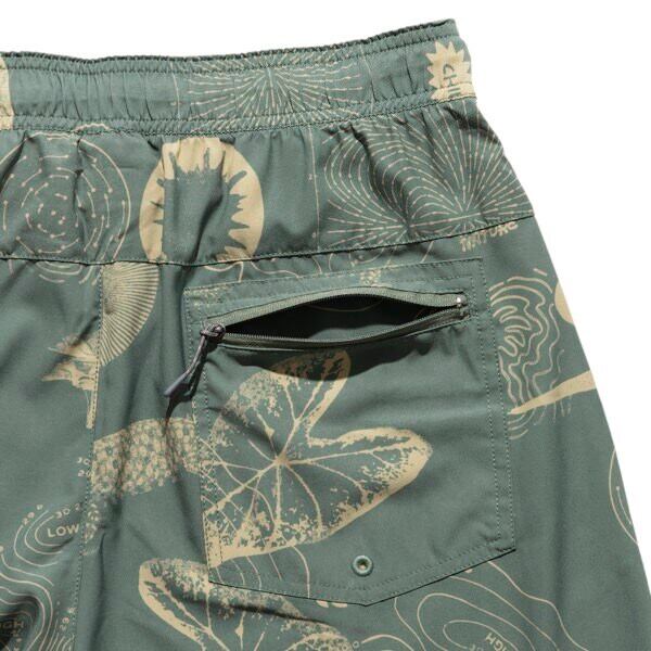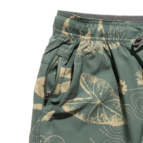 再生ポリエステル製の軽量4WAYストレッチ素材Repreve®に、DWR(耐久性撥水)加工を施しています。両サイドにスラッシュポケットを、バックにはZIPポケットと通気孔も備えています。