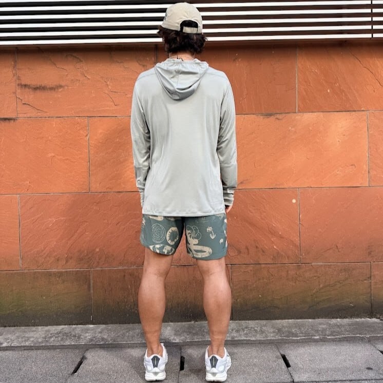 吸水速乾性が高く、7インチ丈なので通常のランショーツと比べ少し長めです。