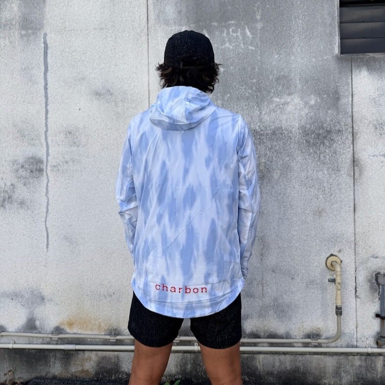 charbon / GRAPHIC NYLON PACKABLE HOODIE(Light Blue)