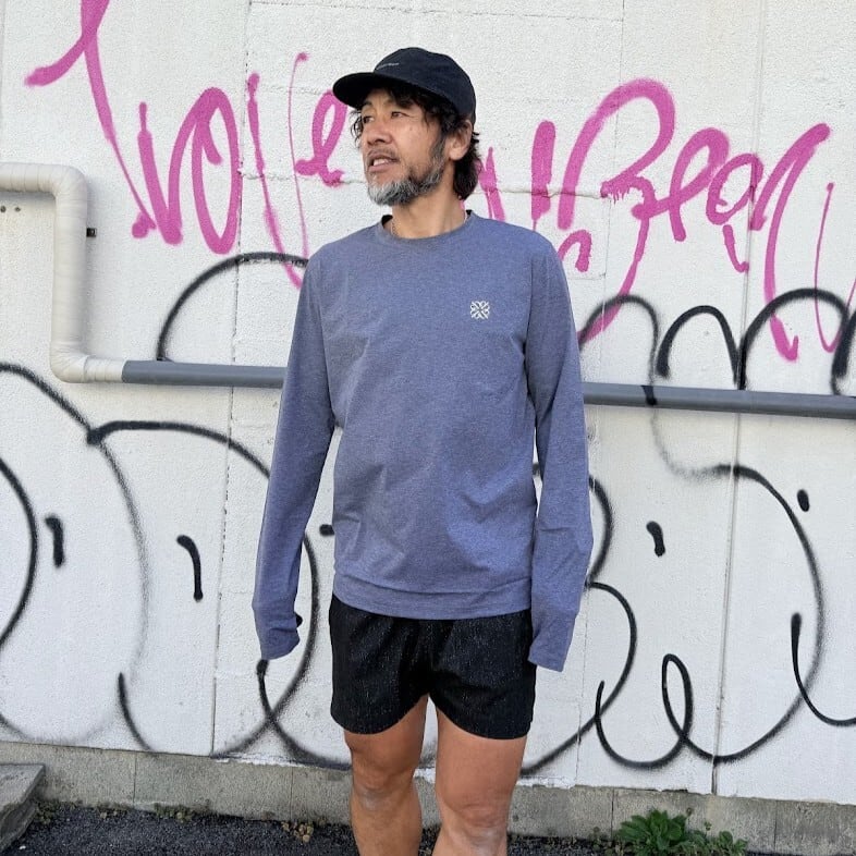 イタリアのファブリックメーカーJERSEY LOMELLINA社の、吸水速乾機能付き高密度リサイクルナイロンジャージーを使用した、ロングスリーブTシャツです。