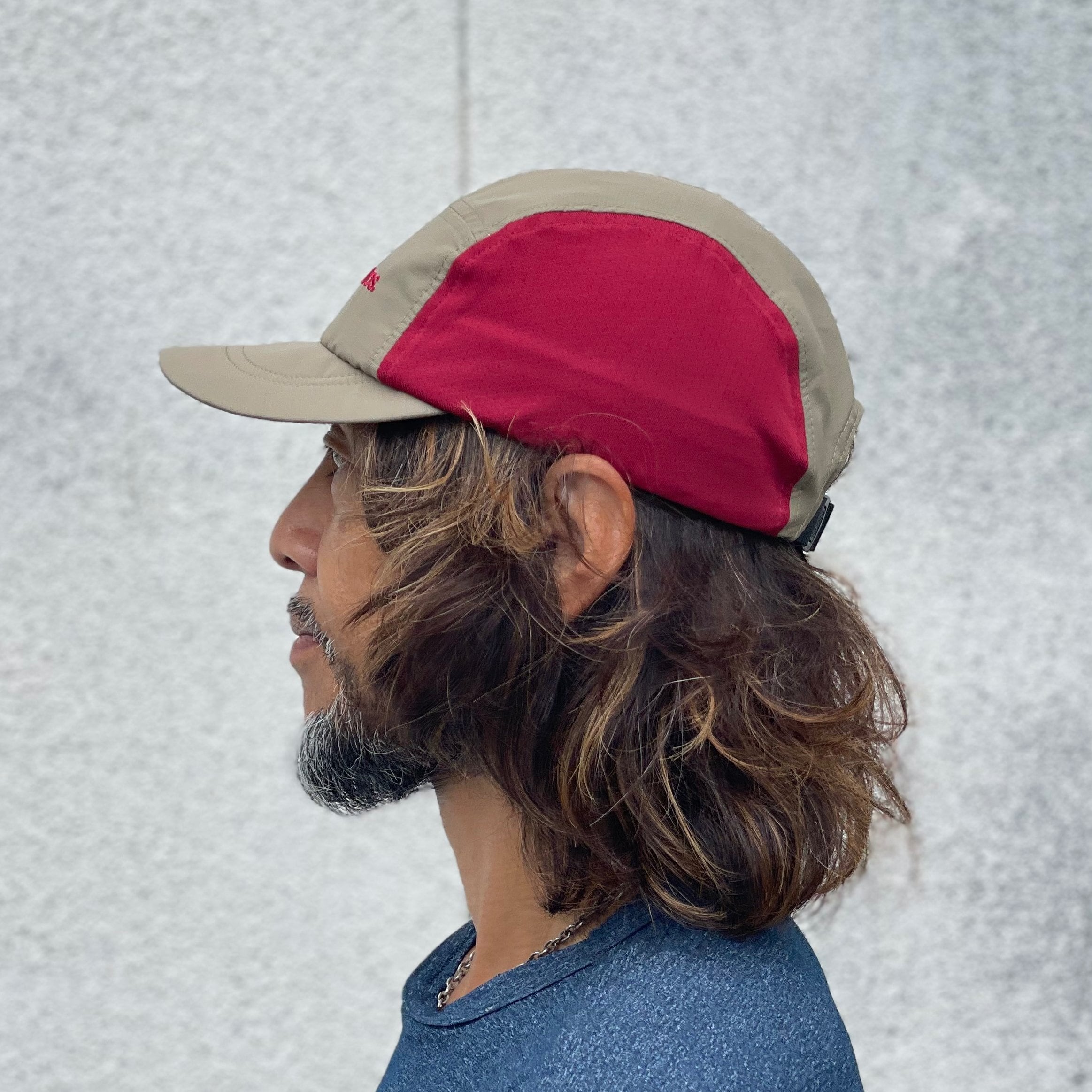 トップから背面にかけて、Durafabric素材を採用した5パネルキャップです。しなやかで軽量、そして耐久性、撥水性も高いのが特徴です。