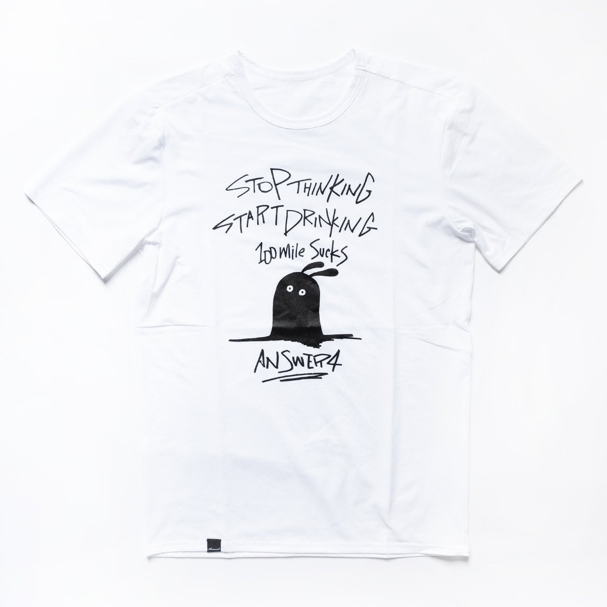 「100mileなんてクソ食らえ!」ってパンチがきいたメッセージと相反する愛らしいキャラクターが中心に描かれています。